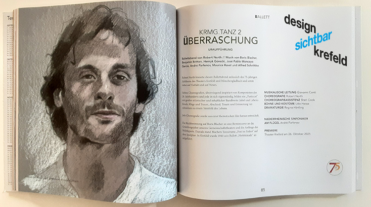 Auf Anfrage des Generalintendanten des Theaters Krefeld-Mönchengladbach, Herrn Michael Grosse, haben zwölf Studenten aus dem Fachbereich Design (mit dem Schwerpunkt Zeichnen/Illustration) unter der Leitung von Prof. Jochen Stücke an der Gestaltung des Programmheftes für die Spielzeit 2025/26 mitgewirkt.